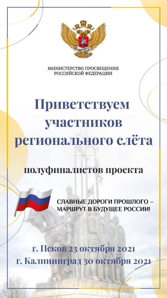 Октябрь 2021 – проведение Слета полуфиналистов Олимпиады по истории России в Пскове, конкурса видеороликов, посвященных теме военно-исторических маршрутов Псковской области.