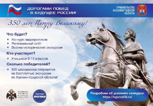 Ноябрь 2021 – конкурс видеороликов, посвященных теме военно-исторических маршрутов Калининградской области.