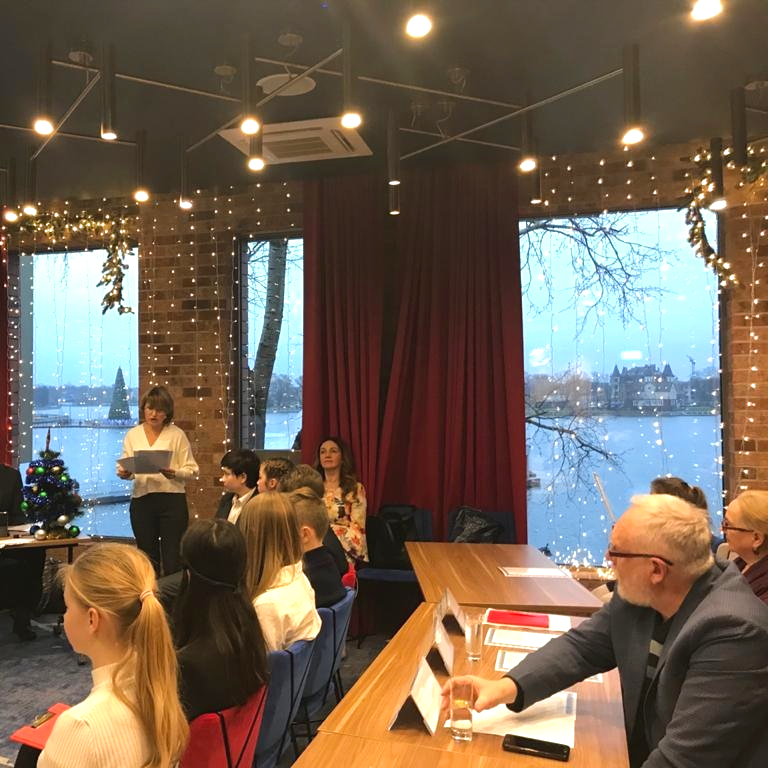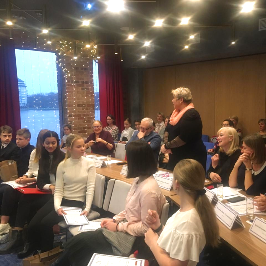 13 декабря 2019 года в отеле «Mercure» в Калининграде, состоялось торжественное награждение десяти победителей из Калининградской области. Детей-финалистов встретил Дед Мороз, с которым они в праздничной атмосфере говорили про зимние праздники в русском народном творчестве, новогодние и рождественские традиции, вспоминали пословицы и поговорки, водили хоровод. Также ребята подготовили краткие выступления и презентации на тему «Зимние праздники и обряды в русском народном творчестве». По итогам их докладов слово брали эксперты Бартфельд Борис Нухимович, председатель «Союза Российских Писателей» (Калининградское отделение), Минакова Раиса Даниловна, кандидат полит. наук, ведущий библиотекарь центра регионоведения Калининградской областной научной библиотеки, а также преподаватели русского языка и литературы Выдрина Ирина Михайловна (МАОУ Гимназия №32) и Мусатова Мария Александровна (Западный Филиал РАНХиГС). Они отметили высокий уровень знаний и эрудицию каждого финалиста, а также уникальное видение темы. По итогам награждения и фотосессии, победители, их родители, учителя и эксперты остались на чаепитие и неформальное общение.